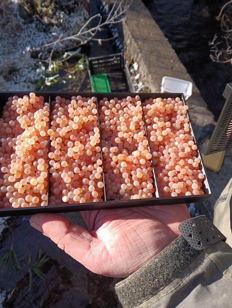 Dňa 21. 1. sme vysadili 30 000 ks ikier pstruha potočného v štádiu očných bodov do chovného revíru Prosiečanka (3-3020-4-1). Po dôkladnej prehliadke a vytriedení boli uložené do boxov a následne vysadené priamo do toku potoka. Cieľom nie je len zarybnenie samotného potoka, ale významný prínos to má aj pre Liptovskú Maru, keďže je dôležitým prítokom do vodnej nádrže. V priebehu roka vykonáme kontrolný odlov, ktorý ukáže, ako sa nám v tejto činnosti darí.